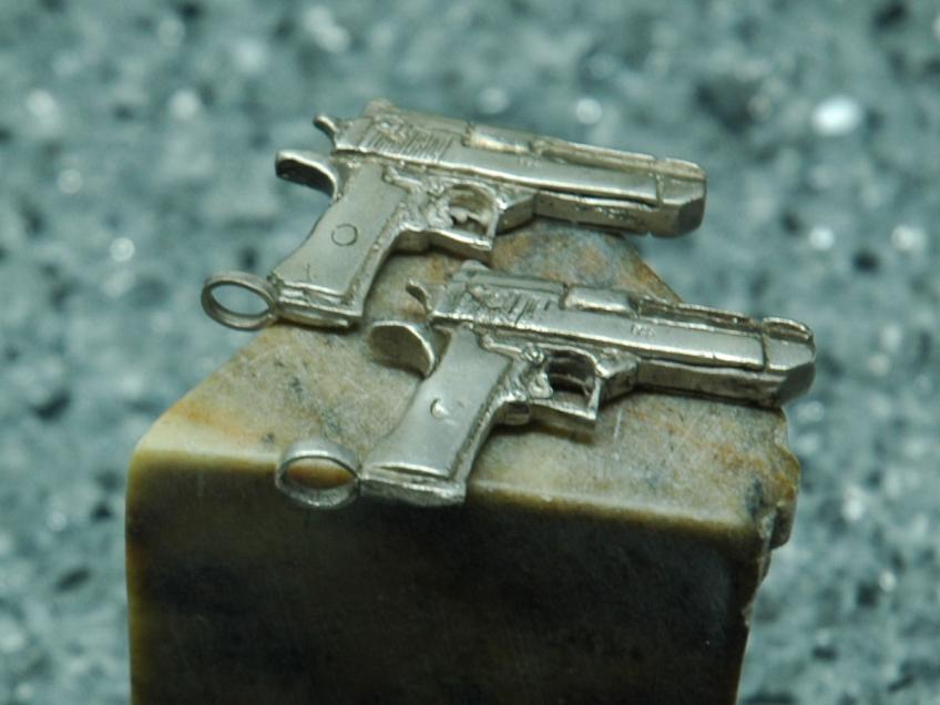 Price CA$100.00 Collection Autumn 2020 Pistol with Jump rings. Jump rings attached to either top of slide or bottom of barrel Jump ring free with purchase, $5 extra for pinch bail PreviousNext Add to cart